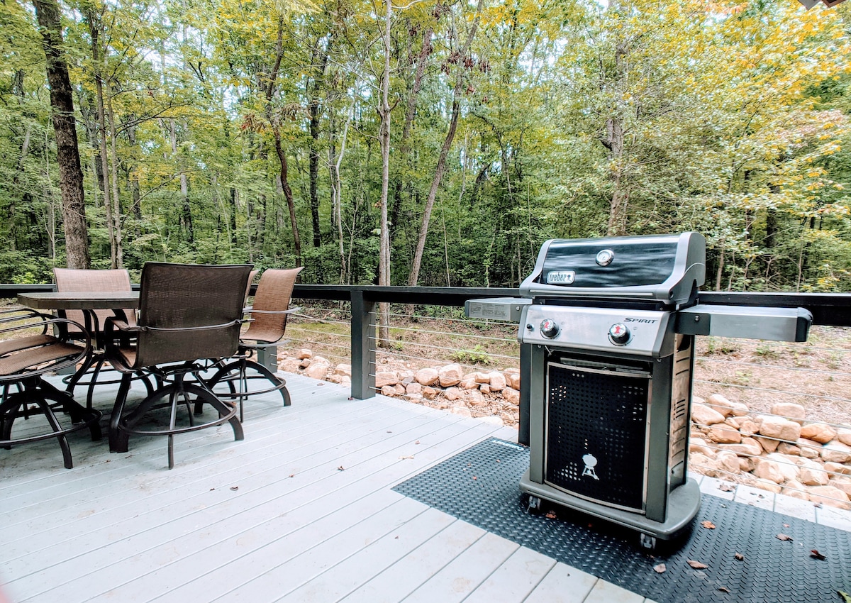¡CUENTA CON JACUZZI! Relájate con estilo en Mac's Lodge (anteriormente anunciada como The Seashore), una pequeña casa de lujo en el Retreat en Deer Lick Falls. Entorno sereno, tranquilo, rústico y arbolado con estaciones de relajación en toda la comunidad. The Retreat at Deer Lick Falls es una comunidad cerrada de casas pequeñas de lujo en el sureste de Tennessee. La comunidad está a solo 15 minutos de la Universidad del Sur en Sewanee. Los huéspedes del Retiro también tienen acceso al Retiro en Waters Edge y su lago.