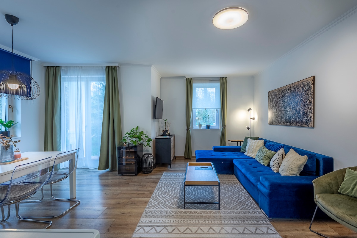 El departamento es funcional, nuevo y ecológico. En su diseño, el objetivo principal era dejar la menor huella ecológica posible. La especialidad es que está en una zona muy tranquila, pero todos los servicios están disponibles a menos de 500 m. Está a 4,4 km del pabellón y 800 m del bosque. Un lugar favorito para paseantes y ciclistas por la naturaleza. También hay aparcamiento cerrado para aquellos que lleguen en caravana.