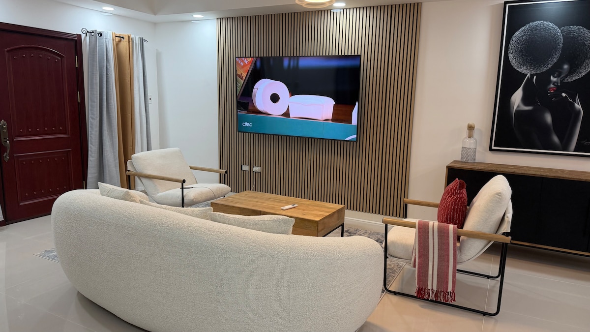 Olvídate de tus preocupaciones en este espacio espacioso pero acogedor y sereno. Ubicado en una comunidad segura y cerrada con una enorme piscina y gimnasio totalmente equipado; ¡servicios perfectos para dar vida a tus vacaciones! Despiértate de tu lujosa cama tamaño king a una cerveza fresca del exótico café jamaicano Blue Mountain ☕️ y mantente conectado a tus plataformas favoritas con wifi confiable. A solo 10 minutos de la playa 🏝 con vistas al mar 🌊 desde el patio trasero.