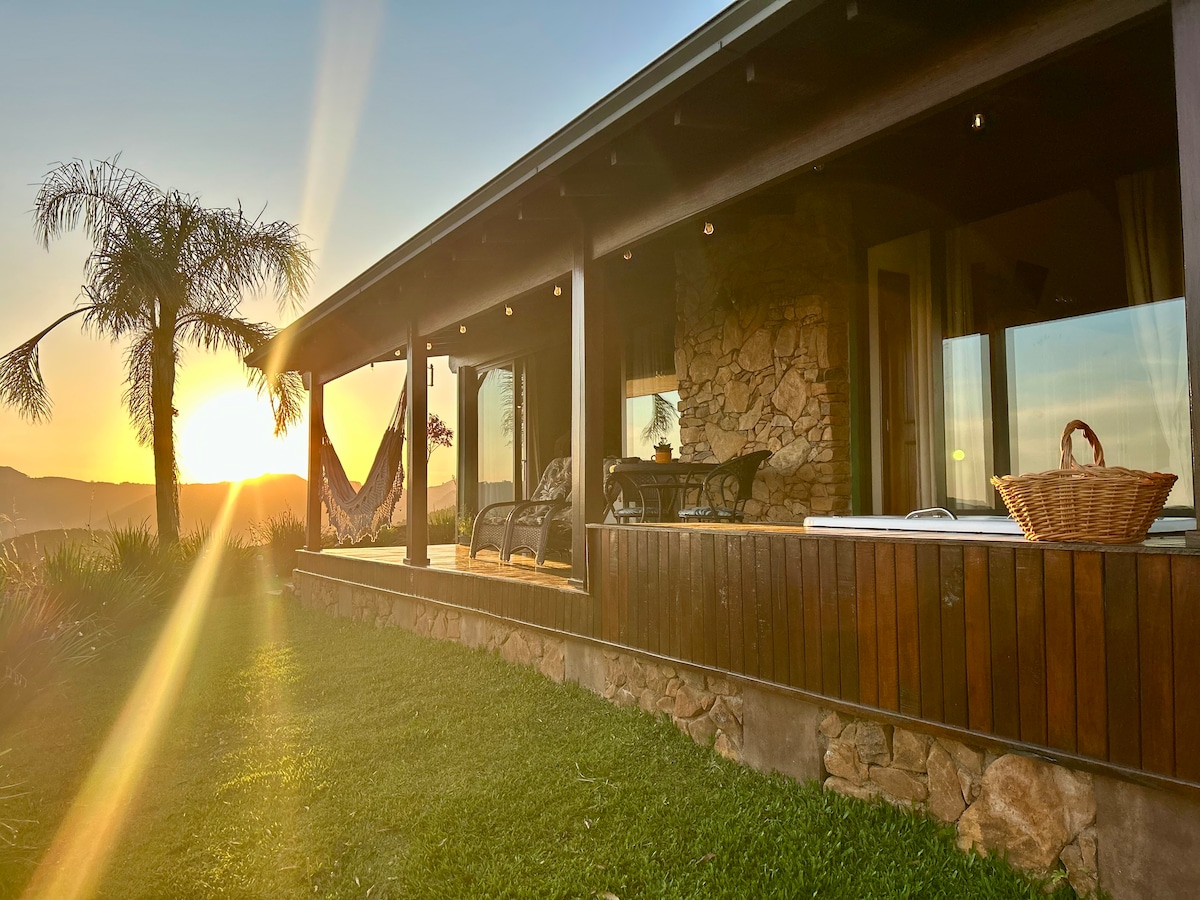 Chalé na Montanha com lindo pôr do sol