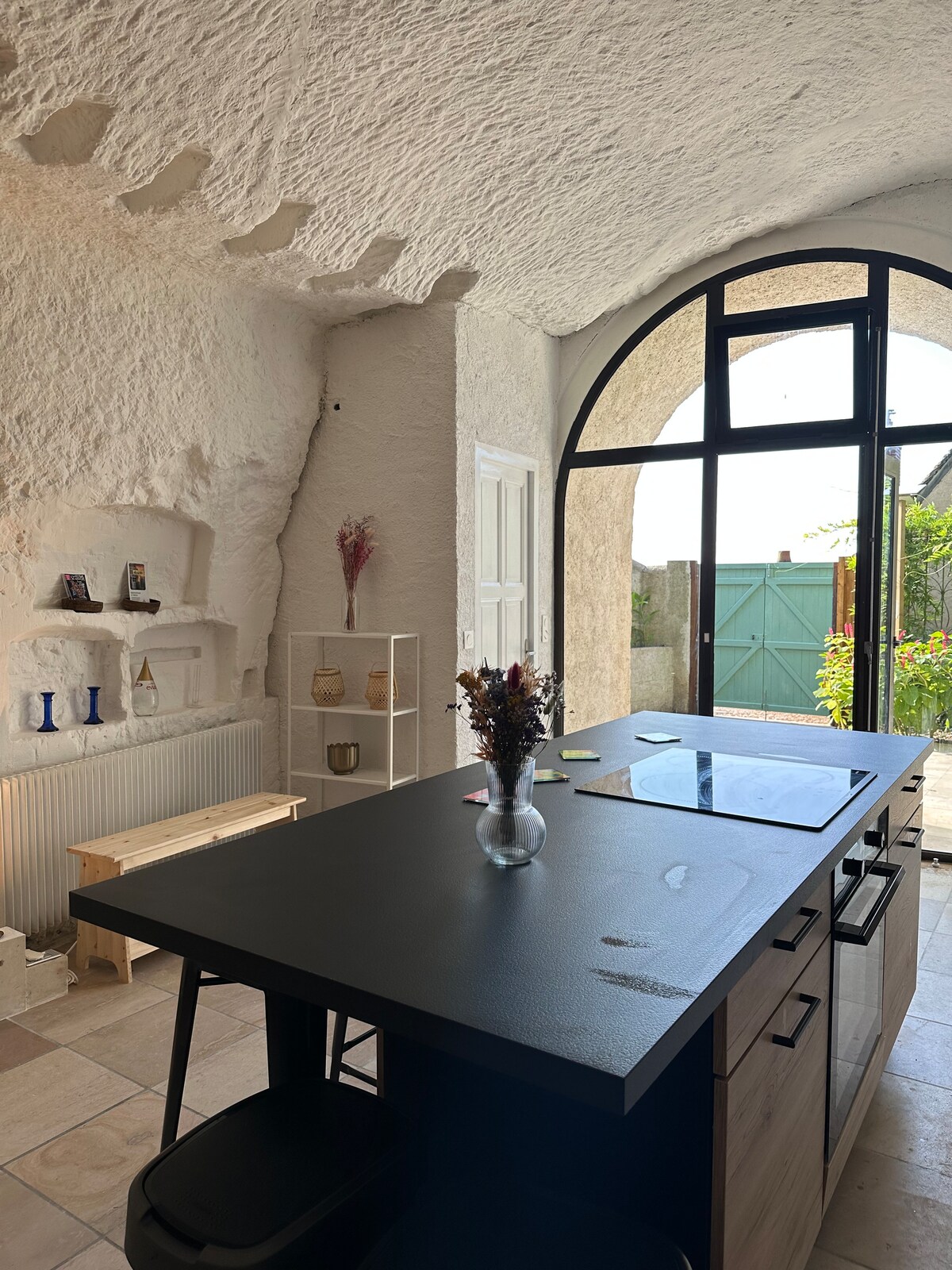 Casa semi-cueva con encanto romántico, idealmente situada entre Tours y Amboise que incluye: - Sala de estar troglo: cocina equipada (desayuno para estancias de 1 y 2 noches), sala de estar y salón. - Suite no troglo: habitación y cuarto de baño, ropa de cama Emma de 160 cm, ducha italiana. - Espacio de bienestar privado ilimitado con spa, sauna de infrarrojos y mesa de masajes (masajes corporales a petición y opcionales con un especialista profesional en cuidados de bienestar