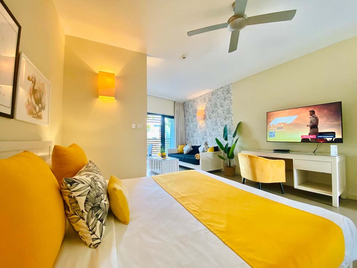 Welcome to Trou aux Biches! Settle into this comfortable 48m² studio with a balcony, located just 100 meters from one of the most beautiful beaches in Mauritius. Here, you’ll enjoy the best of both worlds: the independence of an apartment with a fully equipped kitchenette, combined with the services of a 3-star aparthotel. Whether you’re traveling as a couple or solo, for a few days or several weeks, this accommodation is perfect for relaxing while exploring the north of the island.