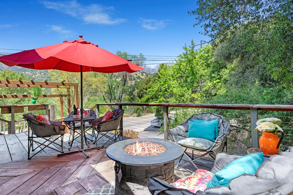 El Redwood Loft está convenientemente ubicado a 2 minutos de la puerta de entrada del Parque Nacional Sequoia y encima del Totem Market BBQ Deli, con un Redwood Wine Lounge. El loft tiene aproximadamente 800 pies cuadrados de comodidad y conveniencia con estilo. Cuenta con una cama tamaño king en el dormitorio principal y una cama Murphy en el salón con un cómodo sofá de cuero, un sofá de dos plazas y un televisor inteligente de pantalla grande. Vistas con un ambiente espacioso y divertido. Escucha el río desde la espaciosa terraza de madera con chimenea y asientos.