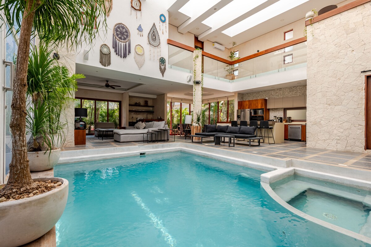 Welcome to Blue Deer Residences! IG: BLUEDEERTULUM Presenting "Hoja Dorada": This stylish 4 bed luxury villa is well thought out and perfect for group celebrations with ample indoor and outdoor spaces, a plunge pool and heated jacuzzi. We offer a boutique experience and pride ourselves in attention to detail and personalized guest relations with a full on-site staff and dedicated concierge - Concierge services are viewable in the listing. If you have any special requests, just let us know!