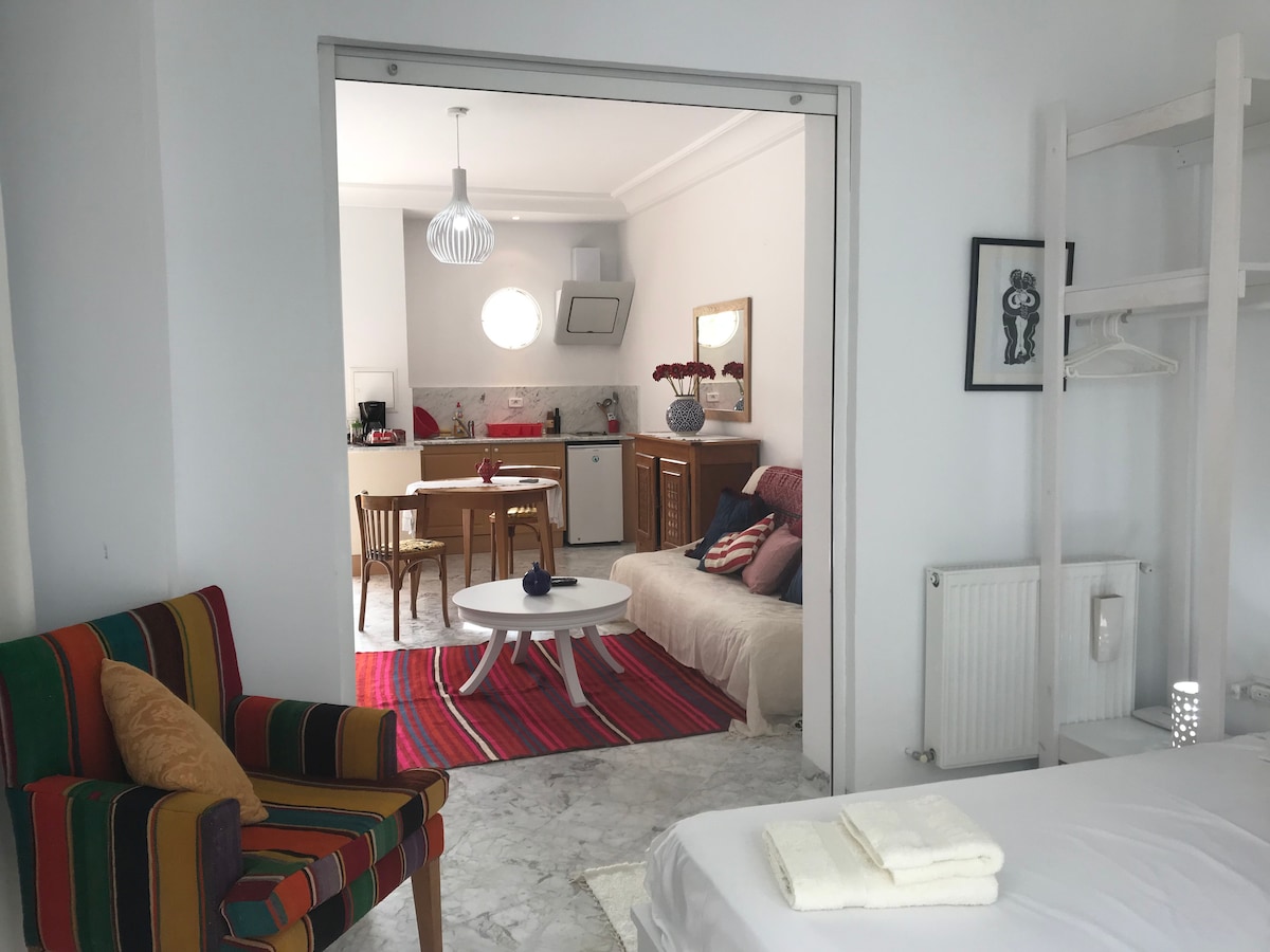 Este suntuoso S+1 se encuentra en el corazón de nuestra encantadora ciudad de La Marsa en la avenida más bella Habib Bourguiba a 5 minutos a pie de la playa y el centro de La Marsa .Está cerca de todos los servicios y es muy accesible en transporte público y en taxi. Este apartamento es ideal para enamorados o viajeros de negocios. No puede soñar con una mejor dirección para disfrutar de su estancia y de nuestra hermosa ciudad.