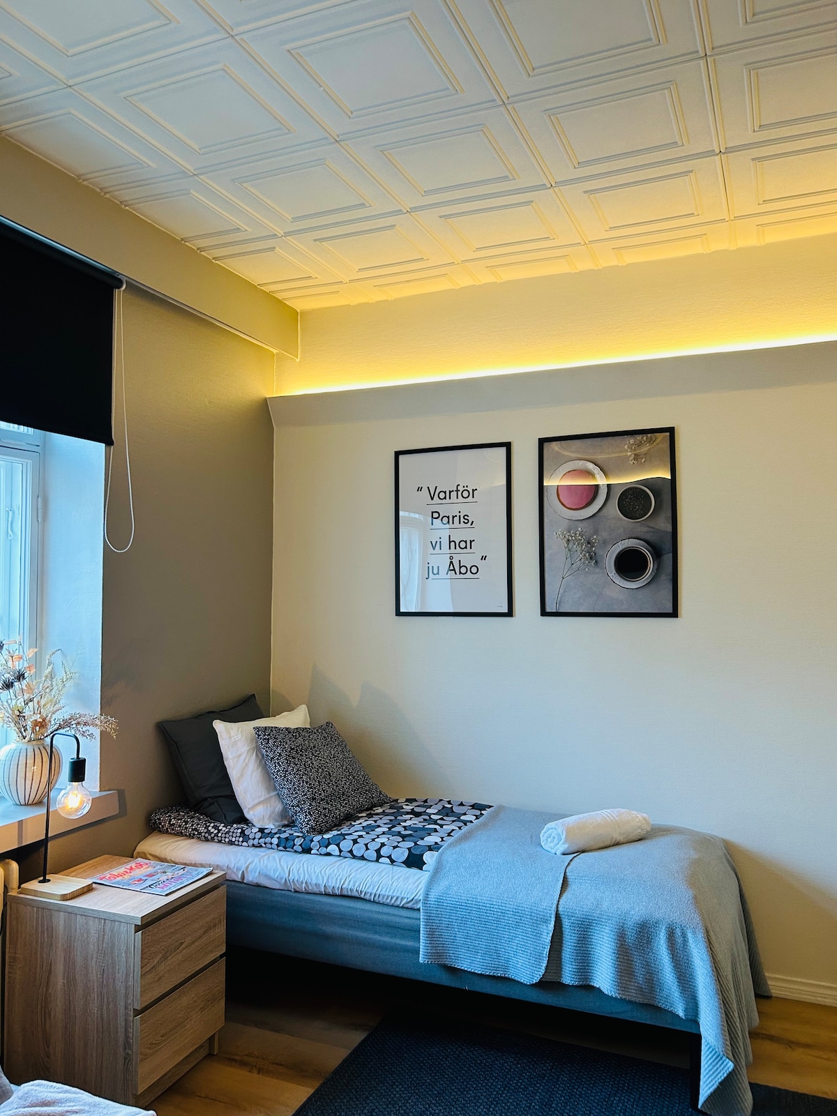 Minä ja puolisoni toivotamme tervetulleeksi viihtymään Turkuun! Vain 5 minuuttia linja-autoasemalta sekä useita pysäköintimahdollisuuksia. Tori, Tuomiokirkko ja jokiranta ihan vieressä kaikkine ravintoloineen ja kahviloineen. My partner and I welcome you to a lovely stay in Turku! Only a 5 minute walk from the bus station and a 15 minute walk from the railway station. The market square, cathedral and riverside are right around the corner offering wonderful cafés and restaurants.