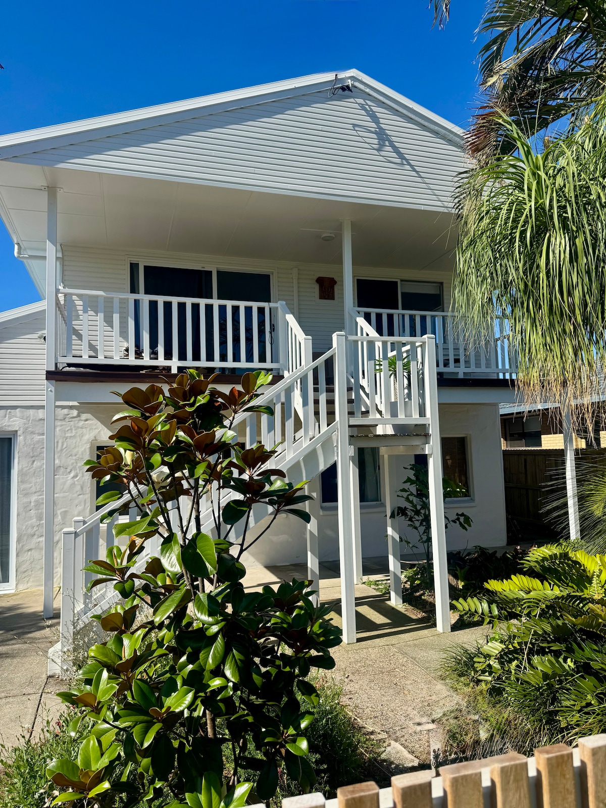 Apartamento estudio tranquilo a sólo 100 pasos de la prístina playa de New Brighton, justo al norte de Brunswick Heads y Byron Bay. Este estudio es compacto (7.5m x 2.7m) pero bien equipado. Completamente climatizada, cocina americana moderna y lavandería con una sola cochera, WiFi/Netflix gratis y TV de 32". Ten en cuenta que se están completando las renovaciones de la casa de enfrente.