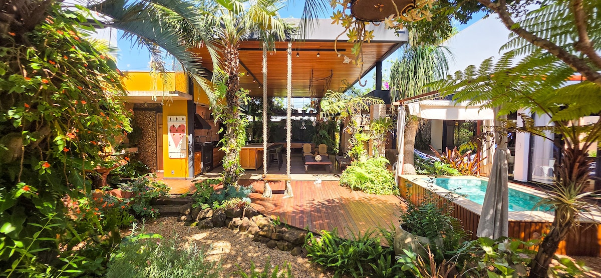 Una casa dentro de un jardín. En Recanto do Algodão, un alojamiento rural ubicado en medio de 600 m² de espacios verdes, el tiempo fluye naturalmente con lentitud. Mientras caminas por la puerta, la ciudad queda atrás y aparecen senderos entre plantas, árboles y espacios comunes. El espacio cuenta con una cocina gourmet, un kiosco en el jardín, un columpio, una mesa de billar y un spa climatizado con hidromasaje, así como un huerto de hierbas y árboles frutales. Un lugar diseñado para unir a las personas, relajarse y disfrutar de la naturaleza.