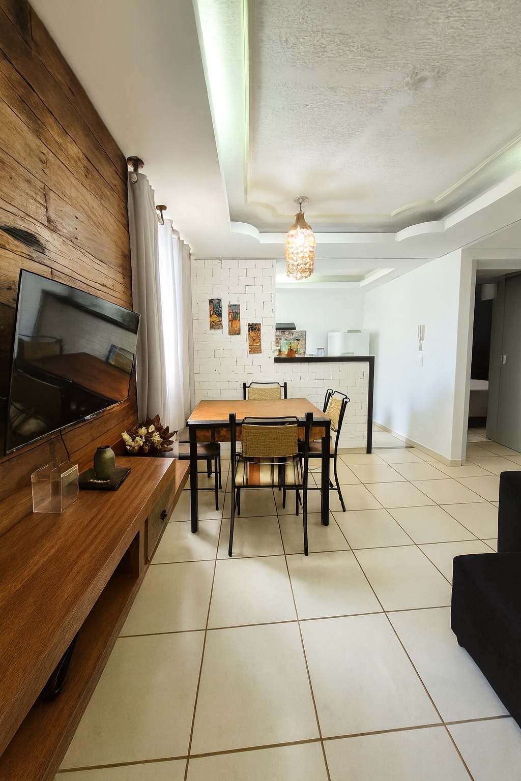 Bem-vindo ao seu refúgio ideal para relaxar e trabalhar. Este apartamento possui uma suíte com cama queen, ar-condicionado q/f e cortinas blackout, além de um segundo quarto com ar condicionado q/f cama de solteiro e beliche e espaço para trabalho. A sala integrada conta com sofá reclinável, TV de 50" e sala de jantar para quatro pessoas. Cozinha completa com micro-ondas, cafeteira, AirFryer e utensílios . Em uma localização prática e segura, próxima a transporte e comércios. Energia renovável.