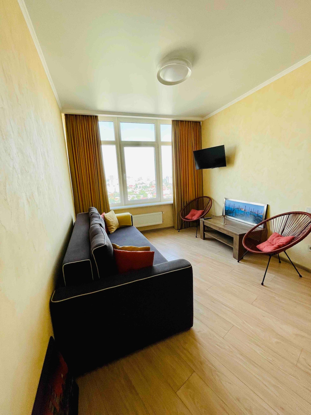 ¡Nuevo apartamento acogedor con magníficas vistas panorámicas al mar! Costosa renovación reciente, piso 17. La casa está ubicada en un área privada cerrada. ¡A dos minutos a pie del mar y del paseo marítimo de Arcadia! Salida desde el patio a la ruta de la salud, por la que en 15 minutos en un cochecito de paseo llegarás al delfinario, al centro de la ciudad y a la playa de Lancerom. 👌 Cocina, estudio y dormitorio. Dos potentes aparatos de aire acondicionado y cortinas oscuras y gruesas, todas las comodidades.