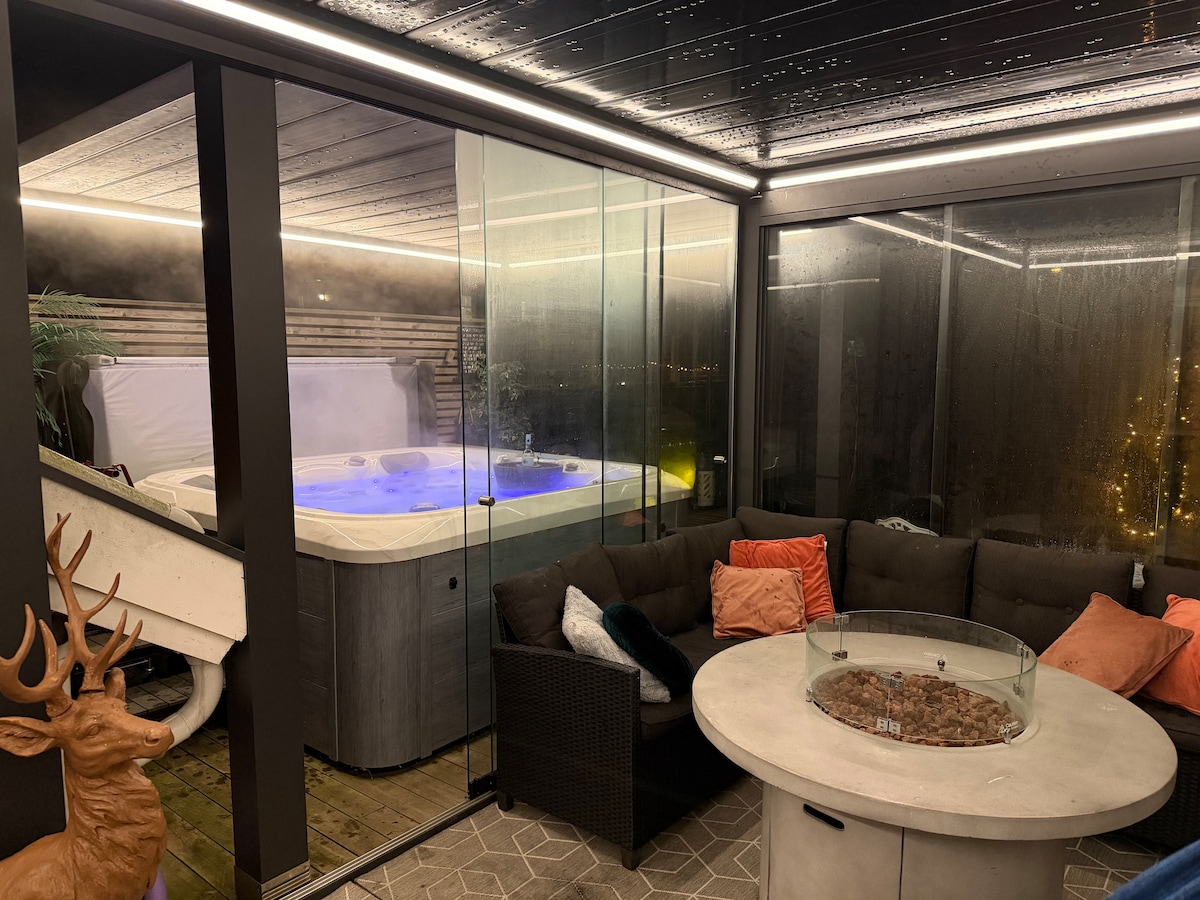 Cozy family friendly home with hammocks, garden with fire pit and jacuzzi to relax and enjoy your evenings. Easy parking outside the front door. Grocery shop 2 minutes walk, near hiking. 3 minutes walk to bus-stop 10 minute drive to jessheim sentrum (with all you need shopping centre, cinema, restaurants, cafes etc.), as well as Gardermoen airport. Fully equipped kitchen, and washer/dryer in the bathroom. BBQ, as well as a wood fire pit outside and an indoor fireplace.