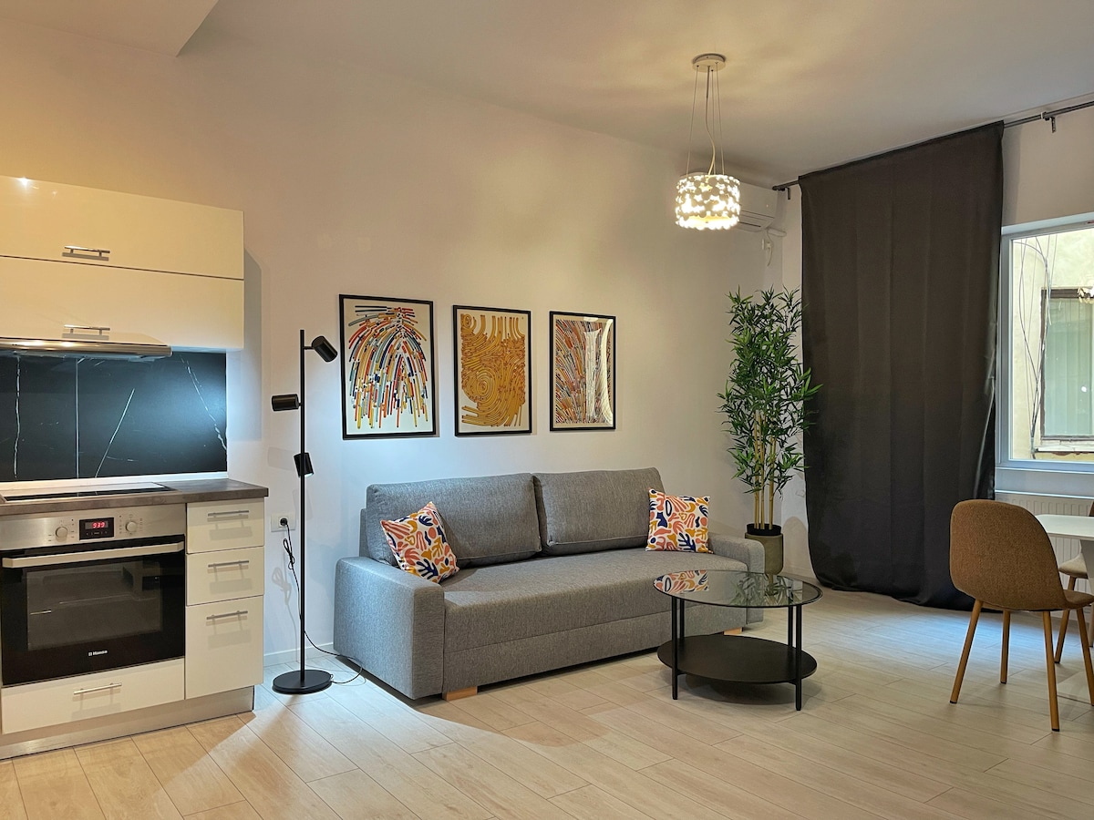 Este precioso apartamento de 1 dormitorio está situado en el corazón de Bucarest, en el límite entre la animada ciudad y el casco antiguo. En cuanto a la ubicación, no puede ser mejor que esto. Desde el balcón tienes unas vistas increíbles de la ciudad. Se puede llegar fácilmente en transporte público (autobús y metro). Este luminoso apartamento fue completamente renovado en el verano de 2020 con materiales de alta calidad y cuenta con todas las comodidades posibles disponibles para una estancia perfecta.