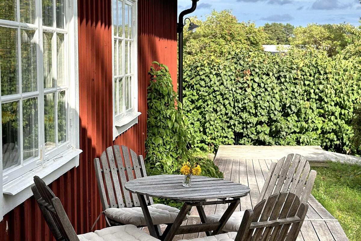 Bienvenido a una casa de playa de 32 metros cuadrados con planta abierta y vistas al lago Mälaren. Hay una cocina pequeña con dos fogones, un horno/microondas combinado y una nevera. En la habitación hay una cama de 140 cm, dos sofás y una chimenea. El baño está equipado con inodoro, ducha, lavadora. En el exterior, hay un patio privado con acceso a una playa compartida. NOTA: falta la cortina opaca, así que no dudes en traer una máscara para dormir si eres sensible a la luz. La casa está en una parte de una parcela más grande en una reserva natural.
