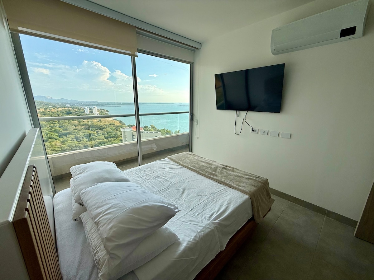 Vista, comodidad, elegancia y ubicación perfecta en Santa Marta en el Caribe colombiano🌞🏖️ Este hermoso apto NUEVO para estrenar te espera en una de las zonas más exclusivas y tranquilas de Santa Marta. Ideal para quienes buscan calidad de vida, sofisticación y acceso directo a la playa. A solo 5 minutos del aeropuerto. Con balcón que tiene la mejor vista hacia el mar que te puedas imaginar! Restaurante, jacuzzis, piscinas, etc. Cobro de manilla $29.200 por persona.