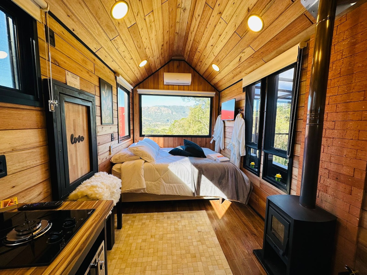 Se encuentra en la ciudad de Orleans/SC Três Barras, en la costa de la Serra Catarinense. Está a 30 km del centro de Orleans, a 1 hora de Serra Rio Rastro y a 1h30min de Serra Corvo Branco. Carretera buena y de fácil acceso, incluso para coches pequeños. Internet es vía satélite, con inestabilidad en días de lluvia. La vista es increíble, lugar tranquilo en medio de la naturaleza. Planeado para 1 pareja, incluyendo un niño. Lugar más aislado, zona rural, ideal para quienes buscan tranquilidad y descanso.