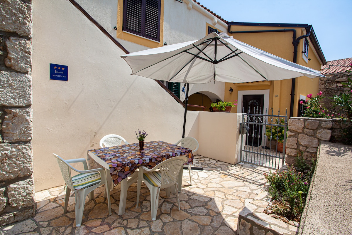 Hermoso apartamento nuevo cerca del mar y la playa con vistas al mar. Tiene un gran jardín con vistas al mar donde puedes relajarse. Nuestro departamento está situado en una ciudad histórica de Osor.