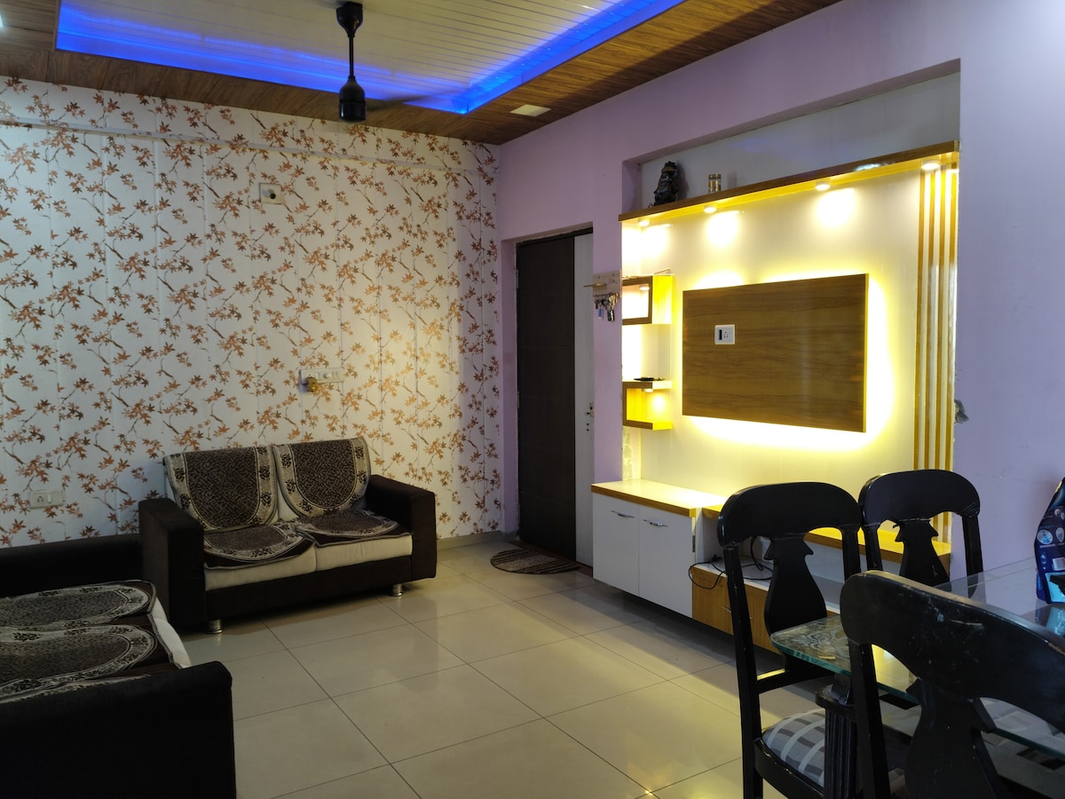 Experience comfort of fully furnished apartment located in the posh and green University area of Vadodara , Gujarat. Centrally situated, the apartment is just 750 meters from the Railway Station and Bus Stand, and only 4 km from Vadodara Airport, making it ideal for both short and long stays. Well-equipped kitchen with all essentials Air conditioning, Flat-screen TV and free Wi-Fi Perfect for professionals, NRI, families, and travellers seeking a peaceful yet central base in Vadodara.