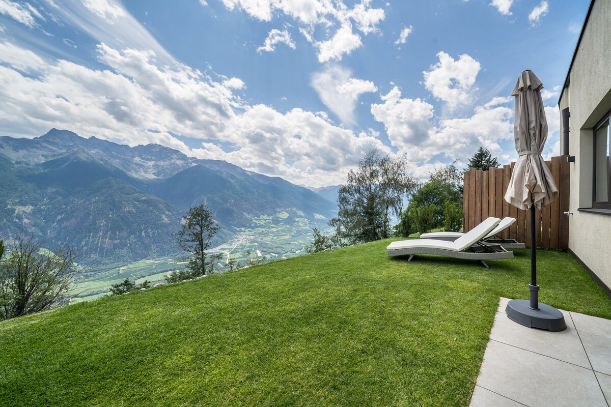 Unas vistas panorámicas, una terraza privada y dos apartamentos nuevos y elegantes. Donde antes había un gran prado con helechos, ahora se encuentra nuestra "farnhaus" (casa de los helechos), en medio de la naturaleza, en una ubicación tranquila y, sin embargo, rápida y fácil de alcanzar. Ante nosotros se extiende todo el valle del Adigio, un espectáculo a cualquier hora del día y de la noche, y Merano y el castillo de Tirol se encuentran a nuestros pies. Un punto de partida perfecto para hacer senderismo y pasear.