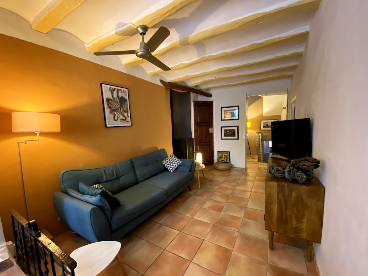 Casona en el centro del pueblo, con una gente muy hospitalaria y a 769 m de altitud, situada en el corazón de las montañas alicantinas es perfecto para escuchar el silencio, tener paz y tranquilidad para el relax y al mismo tiempo en una hora puedes estar en la costa disfrutando de las playas, turismo y bullicio en sitios como Benidorm, Altea, Denia o Calpe.