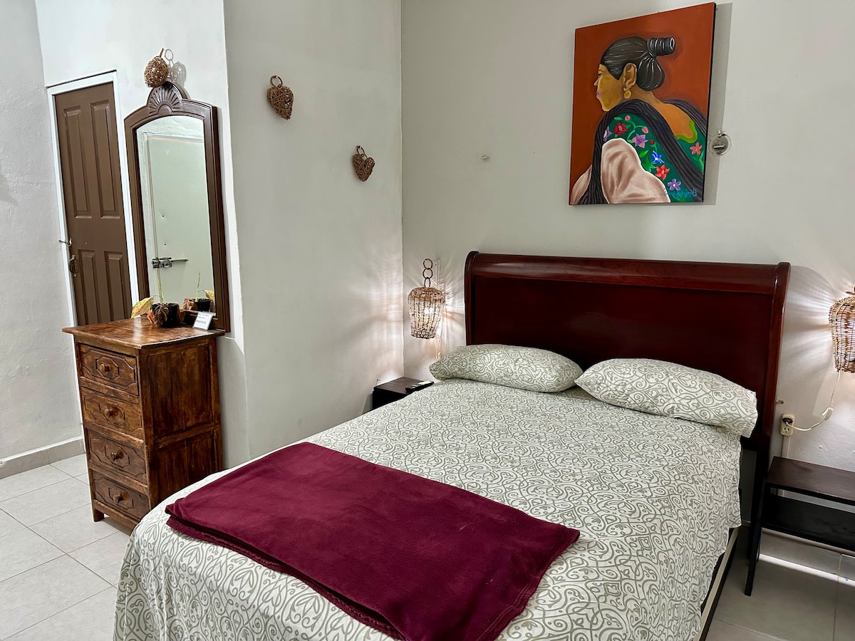 La casa tiene un estilo de acabado moderno colonial tipo yucateco, la habitación de 29 m2 se encuentra frente a la alberca. La ubicación es ideal, en una calle tranquila y segura a 5 minutos del cenote Zací y centro histórico a sólo unos minutos caminando del barrio San Juan.