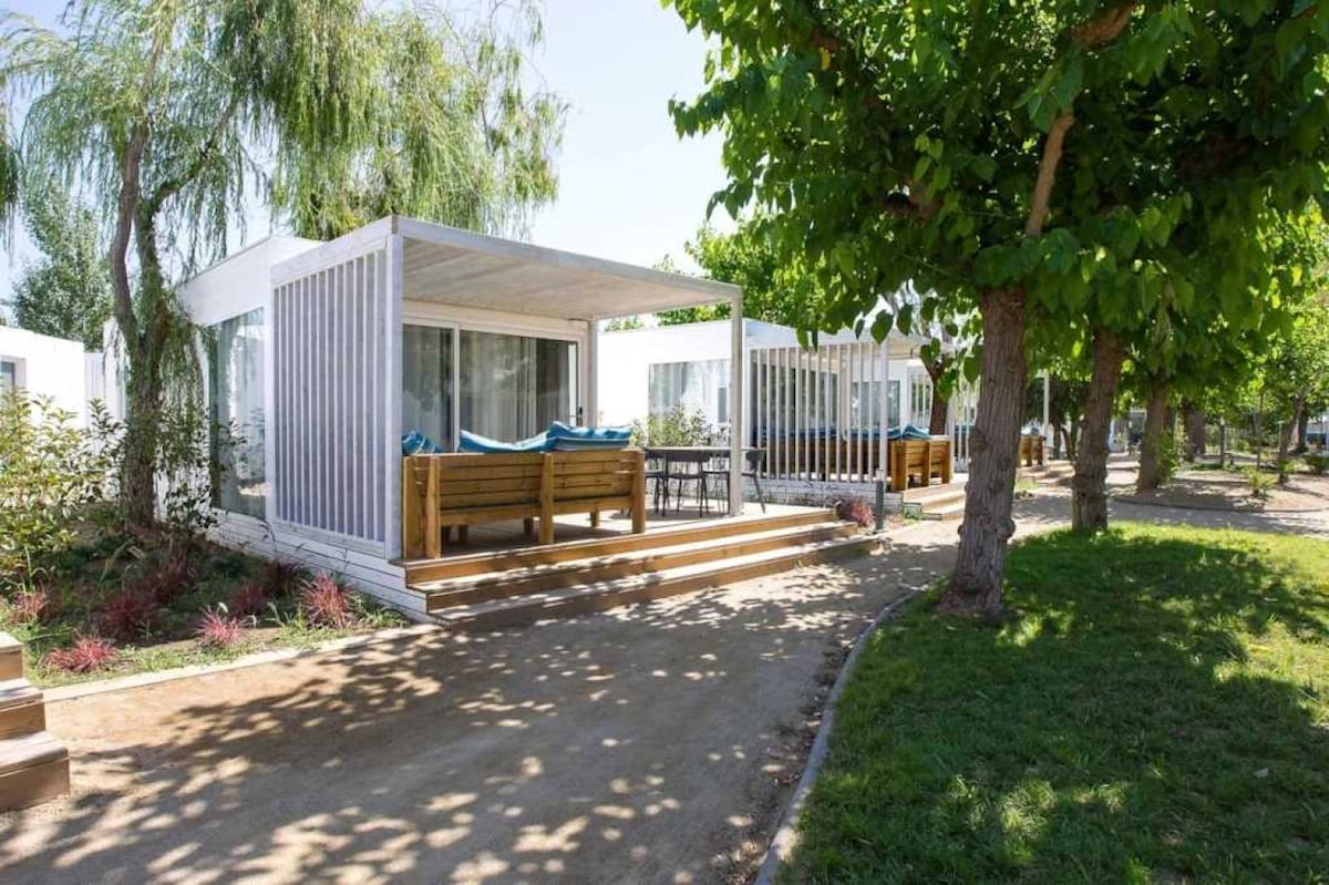 Bungalow con gran terraza en un parque tranquilo