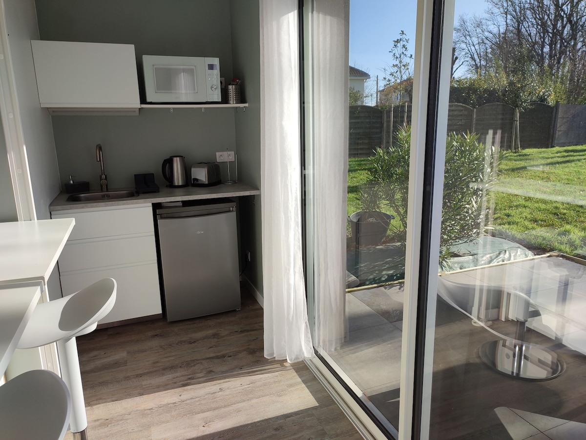 A deux pas du centre ville, ce charmant appartement T1 de 23m2 est situé à 3 minutes à pieds de la gare, du château et d'une boulangerie. Nous vous accueillons dans cet ancien atelier complètement refait à neuf et entièrement équipé pour un séjour à Châteaubriant en toute autonomie. Très lumineux, ce logement en rez-de-chaussée tourné vers un grand jardin vous permettra d'en profiter aux beaux jours et de séjourner au calme à Châteaubriant... Cyclistes, un préau et un garage sont à disposition