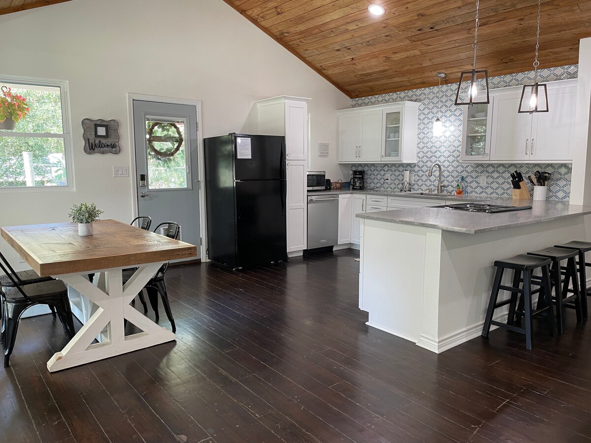 ¡Con confianza! Una verdadera escapada acogedora ubicada en el distrito histórico. Disfrute de una casa privada y relajante a la sombra de nogales después de un largo turno o para su próximo viaje de pesca. Equipado con una cocina completa y lavadora/secadora: siéntase como en casa, evite la lavandería y cocine sus comidas como lo haría en la comodidad de su propia casa. ¡O camine hasta un restaurante cercano!