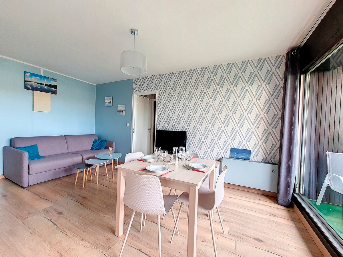 Cerca de la talasoterapia con acceso directo al mar y al dique Marcel Proust. El apartamento se encuentra a 15 minutos a pie del centro de Cabourg El apartamento incluye: una habitación: una cama doble de 160 cm de ancho. Sala de estar: sofá cama de 160 cm, cuarto de baño con bañera. una cocina equipada (horno/microondas/lavavajillas/nevera/cafetera NESPRESSO). un balcón con sala de estar Los camas están hechos para su llegada Ropa de cama de calidad con toallas de baño incluidas.