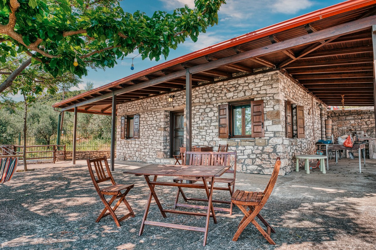 The stone house is at the edge of a deserted village of the 18th century, Paleohori (Old Village), built at 1930 and restored at 2005, in a land of 3.000 square meters. Located on a hill of mount Arakinthos in Aetolia, at a height of 250m., with a unique magic view to the biggest natural lake of Greece, Trihonida. Is suitable for people who looking for serenity, privacy, chill out and take pleasure from the nature. "True paradises, are the paradises that have been lost" -M. Proust-
