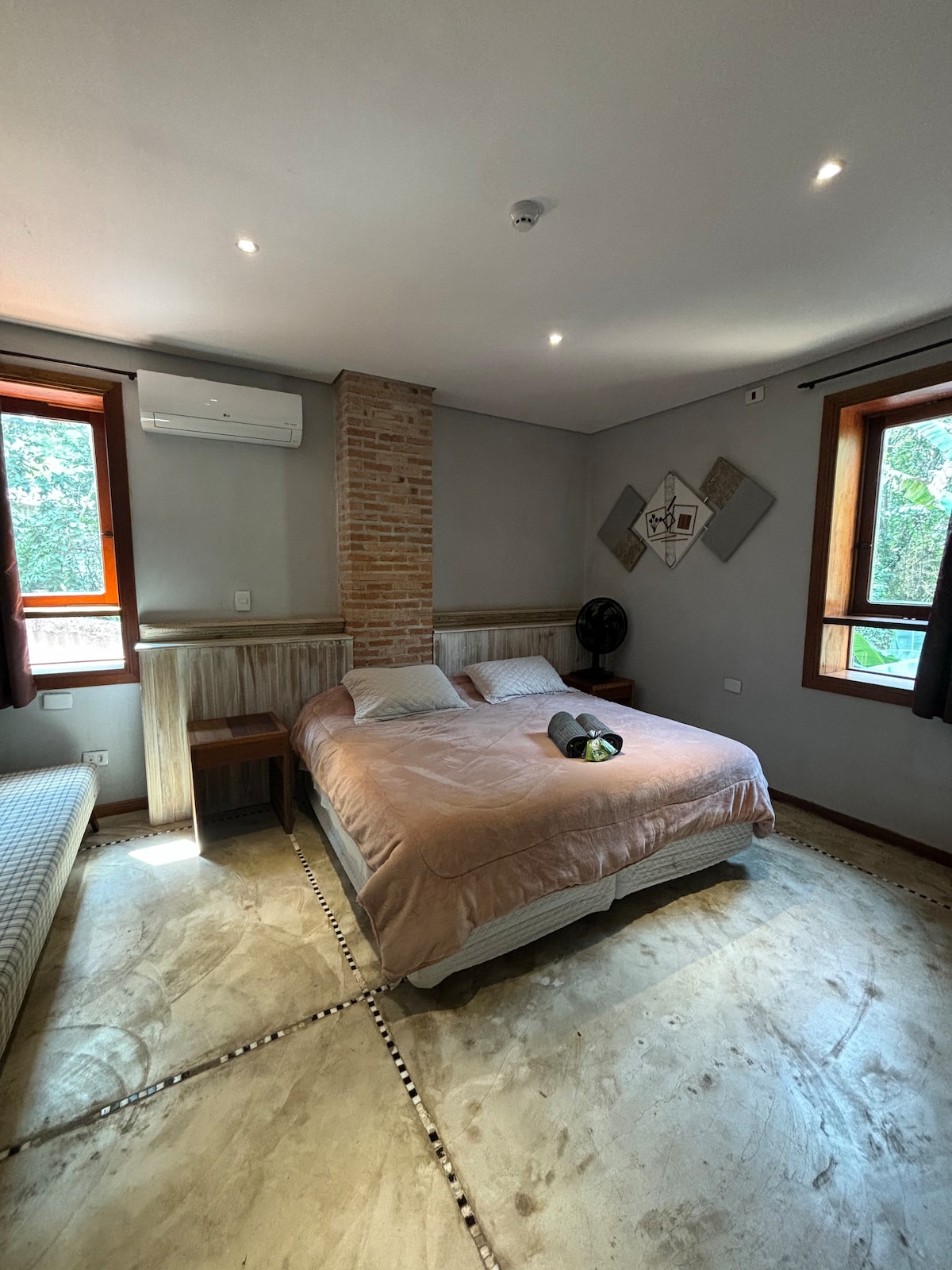 Amplia casa de campo cerca de la Serra de São Roque, rodeada de bosque nativo, en un pequeño condominio. ¡Tendrás contacto con animales salvajes y pájaros como visitantes! ¡Clima templado de montaña! Todas las habitaciones tienen terraza y ventiladores de techo. Zona de ocio con hidromasaje climatizado, mini pista, piscina, barbacoa, horno de leña y espacio para los niños (casa en el árbol y cama elástica)!