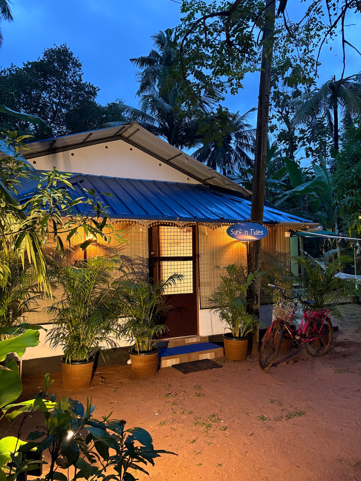 Alójate en un encantador 1BHK de estilo Kerala a pocos minutos de la playa de Varkala. Perfecto para parejas o familias pequeñas, este acogedor alojamiento ofrece privacidad, comodidad y un toque de tradición. Disfruta de un dormitorio espacioso, sala de estar y tu propia cocina para cocinar comidas frescas. Rodeado de vegetación, es tranquilo pero está cerca de la playa, cafeterías y tiendas. Ideal para aquellos que desean una escapada relajada junto a la playa con las comodidades de casa.
