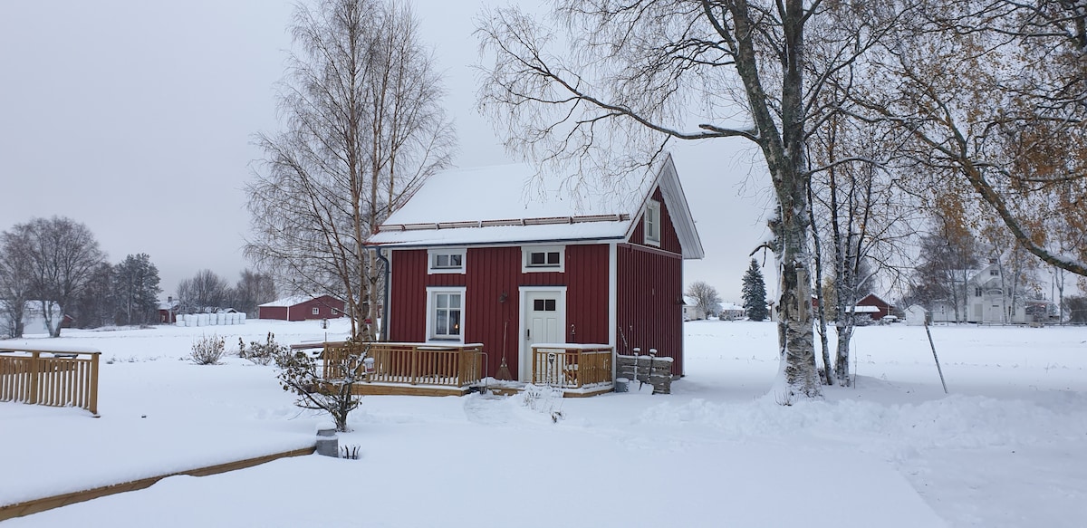 Ubicada en la isla de Ön (una isla en el río Umeälven) y a poca distancia tanto del aeropuerto como del centro de Umeå, encontrarás esta microcasa sobre ruedas. La casa está totalmente equipada con todas las comodidades y tú eliges si quieres comprar el desayuno o prepararlo en la bonita cocina. En verano, tenemos abierta la tienda de artesanía y la cafetería del jardín Eljest en la misma granja. Hay un amplio aparcamiento a unos 50 metros de la casa. Es posible cargar su coche eléctrico a precio de coste. Le damos la bienvenida.