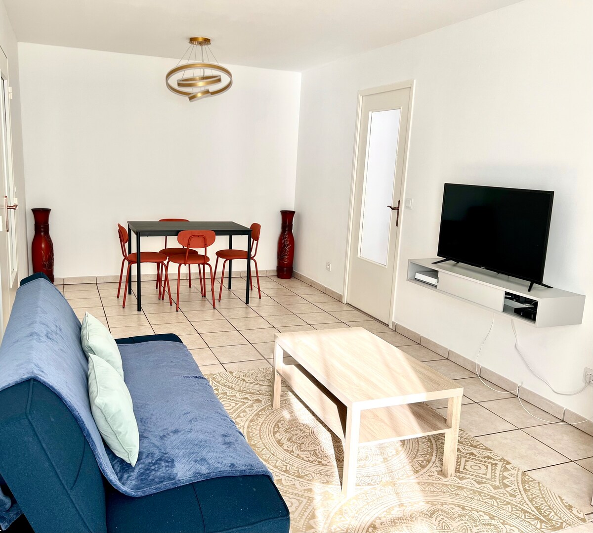 Dúplex amueblado de turismo 2⭐ con entrada independiente, jardín y piscina compartida🏊♂️ en temporada. Planta baja: cocina americana equipada, ideal para desayunos y comidas sencillas, y baño. Planta: 2 dormitorios con aire acondicionado y sala de estar TV + sofá cama, amueblados bajo el ático, habitaciones en hilera. Barrio tranquilo, cerca del metro/tranvía Vaulx-en-Velin La Soie y tiendas. Estacionamiento gratuito. Vivimos en el lugar, el espacio de los viajeros está totalmente separado para mayor comodidad e intimidad.