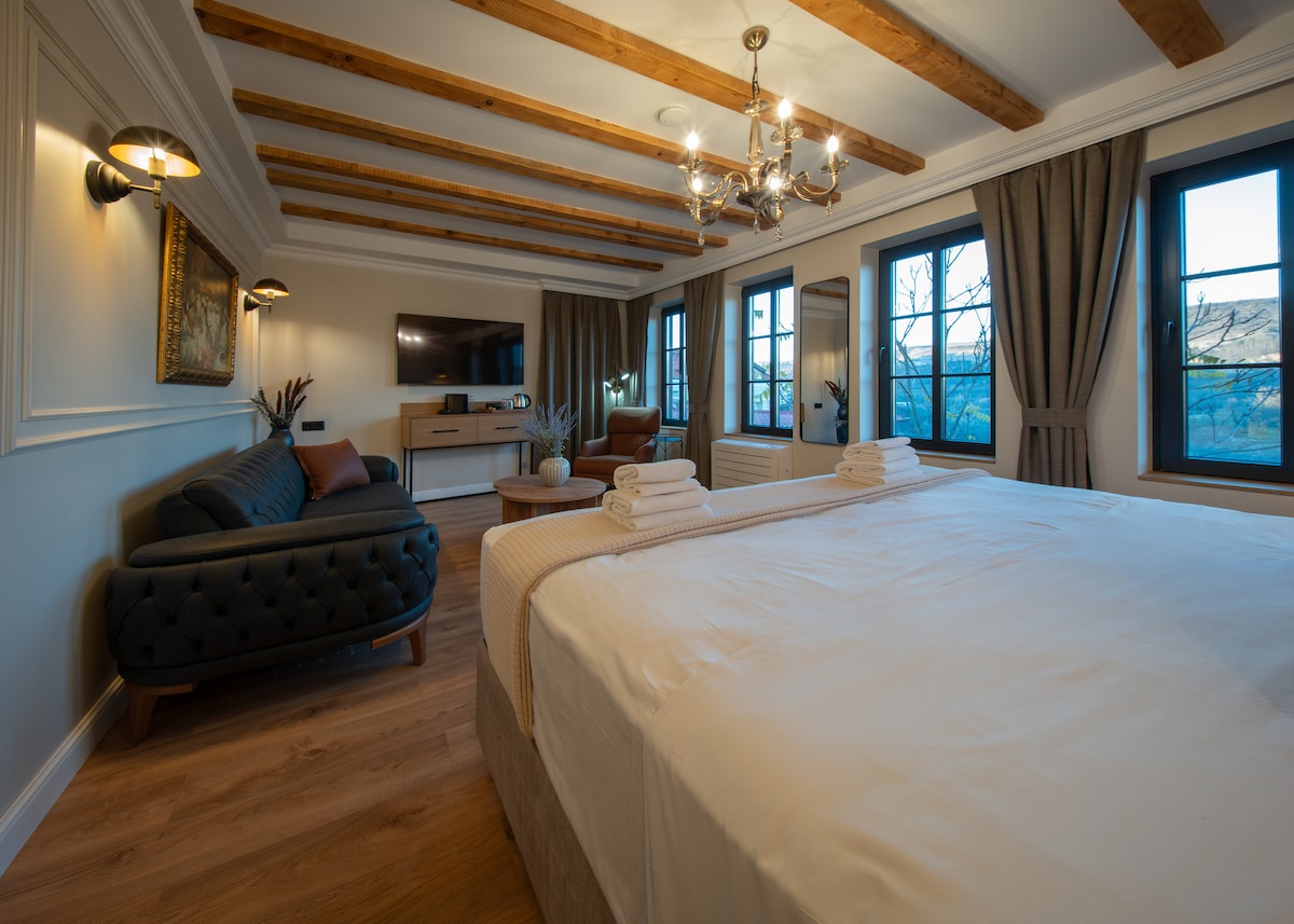 Forget your worries in this spacious and serene space. This is a charming stand alone guesthouse with attached covered patio. It features large bathroom with Villeroy & Boch bathtub for two and spa like environment that will soothe your city stress. Guest house VINI is situated behind the main house of this country estate and it is not visible from the outside. Located in the center of the village, across a mini market and only 5 km from the resort area of Kapinovski Monastery & campgrounds.