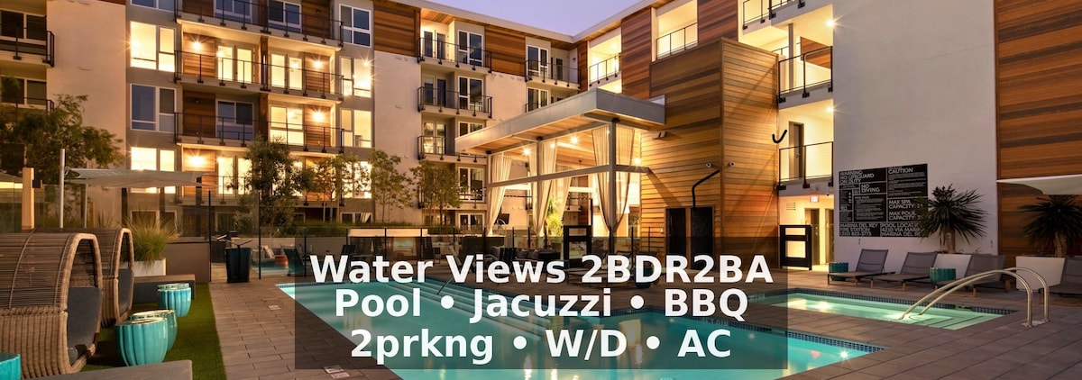 Vistas al agua, 2 habitaciones, 2 baños•Piscina•Jacuzzi•2 estacionamientos•Lavadora/secadora•Aire acondicionado•Asador