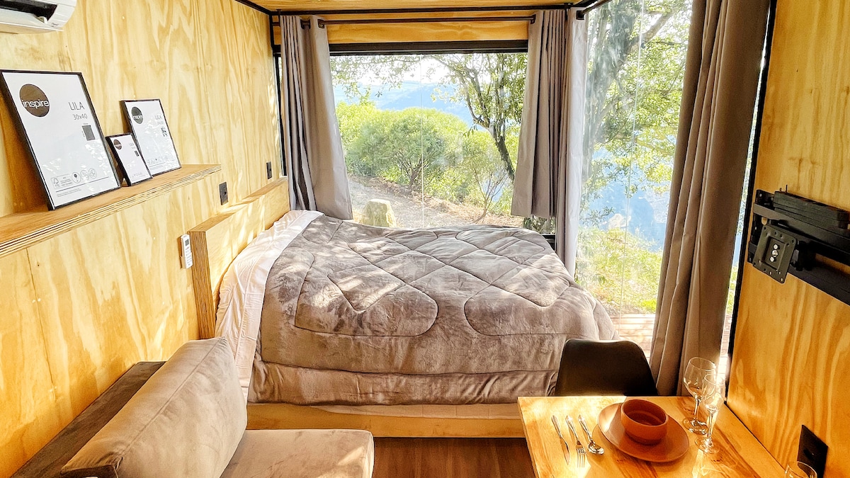 La cabaña contenedor Nova Roma do Sul está en una hermosa propiedad rural con una vista frontal del increíble Río das Antas. Una vista verdaderamente privilegiada que impresiona a todos. Vivirás una experiencia única de contacto con la naturaleza y con total privacidad y comodidad, disfrutando de una estructura con cocina totalmente equipada, dormitorio y baño para que vivas momentos únicos.