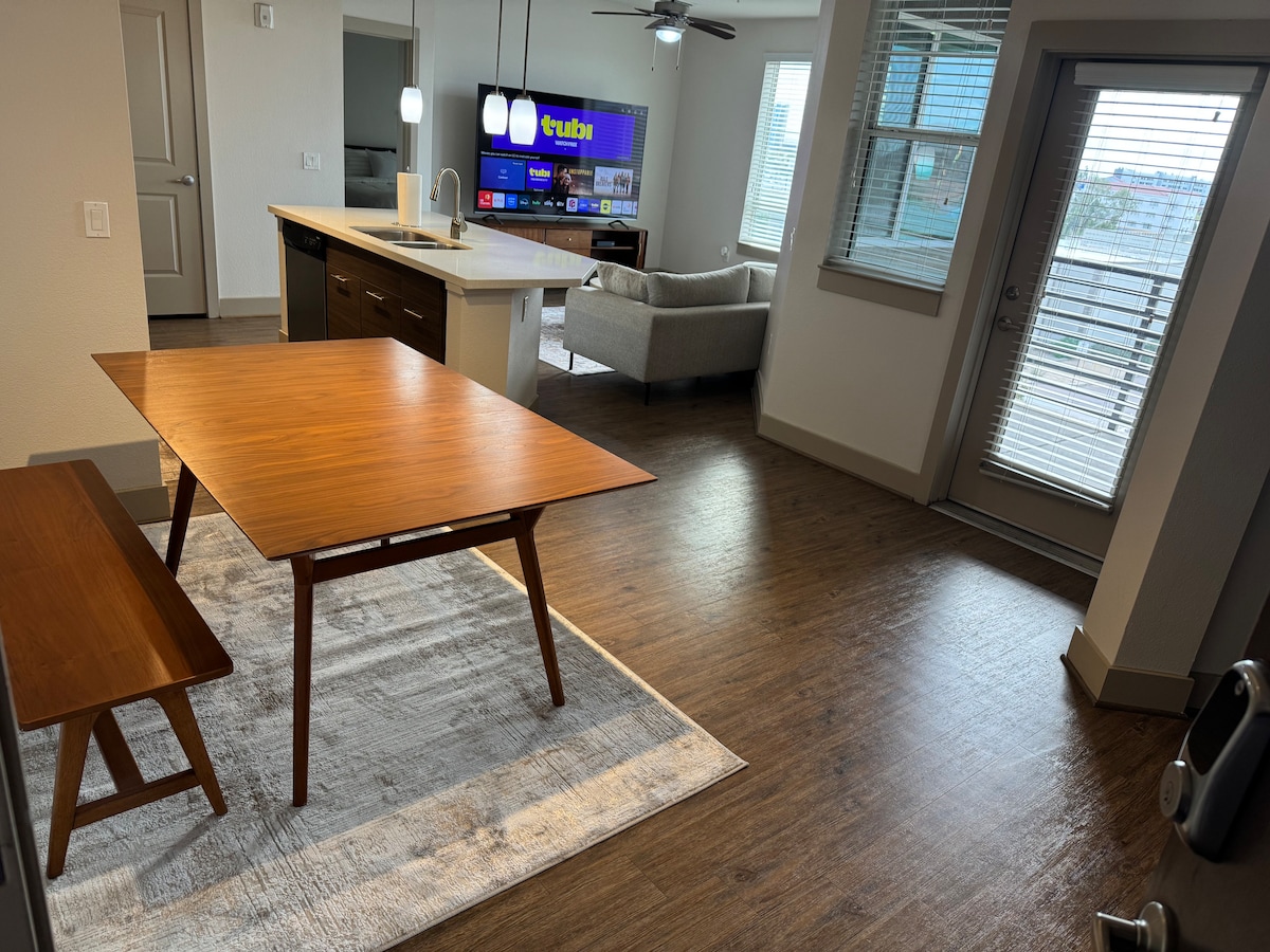Lujoso apartamento de 1 dormitorio y 1200 pies cuadrados totalmente amueblado. en la planta baja ubicado en el corazón de Tempe/ASU y a pocos minutos del lago Tempe Town Lake, Gammage, el casco antiguo de Scottsdale, Papago Park y el hospital St. Luke's. Cama tamaño king. Roku TV de 55 pulgadas en la sala de estar y el dormitorio principal. Wifi de alta velocidad. El registro de entrada autónomo proporciona un fácil acceso mediante un código único de 4 dígitos que se envía el día de la llegada. 2 plazas de aparcamiento gratuitas en la entrada. A 8 pasos del coche hasta la puerta principal. Entrada bien iluminada.