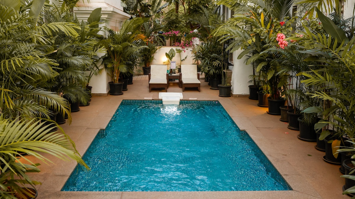 Imagina entrar en un apartamento moderno y cuidadosamente diseñado con exuberantes jardines comestibles en el balcón que compartes con pájaros y ardillas. Ubicado en Siolim Marna, este 1BHK está diseñado para parejas, viajeros solitarios y familias poco convencionales en unas vacaciones cortas, un viaje de trabajo más largo o un retiro tranquilo. Nos encantan todas las cosas de diseño y bricolaje. Cada mueble ha sido reciclado y hemos tratado de pensar en todo lo que puedas necesitar: wifi de respaldo, un bar, una cocina equipada, un columpio, libros y materiales de arte.