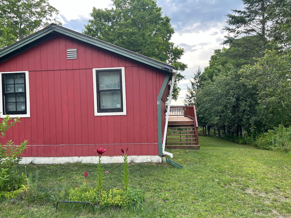 Casa de campo acogedora entera con capacidad para 5-6 personas. Vista del lago Willoughby desde la terraza. LAS MASCOTAS cuestan $ 20 por noche POR MASCOTA. No permitas que suban a la cima de los muebles (sofá o camas). No hay enrutador WiFi dentro de la cabaña en sí, pero hay una extensión de refuerzo y se proporcionará contraseña para acceder a WiFi desde la puerta de al lado del propietario (a solo 25 metros). La televisión tiene reproductor de DVD a continuación, no hay cable.