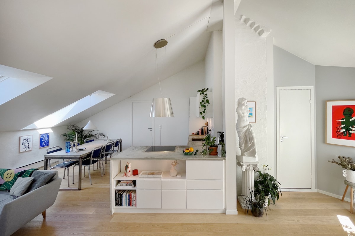 Leiligheten er et romslig loft. Her er detaljene designet av nordiske arkitekter, i en skandinavisk stil for koselige kvelder og arbeid. Stuen er stor og luftig med sofa og spiseplass. Her er det loftsvinduer og autentisk treverk i taket og heltre gulv. Soverommet er romslig med en stor komfortabel seng og en praktisk kjøkkenkrok. Alt du trenger skal være tilgjengelig :) Arbeidsrommet er godt designet for fokusert arbeid med bærbar pc eller lesing. Bøker tilgjengelig for å lese. Velkommen!