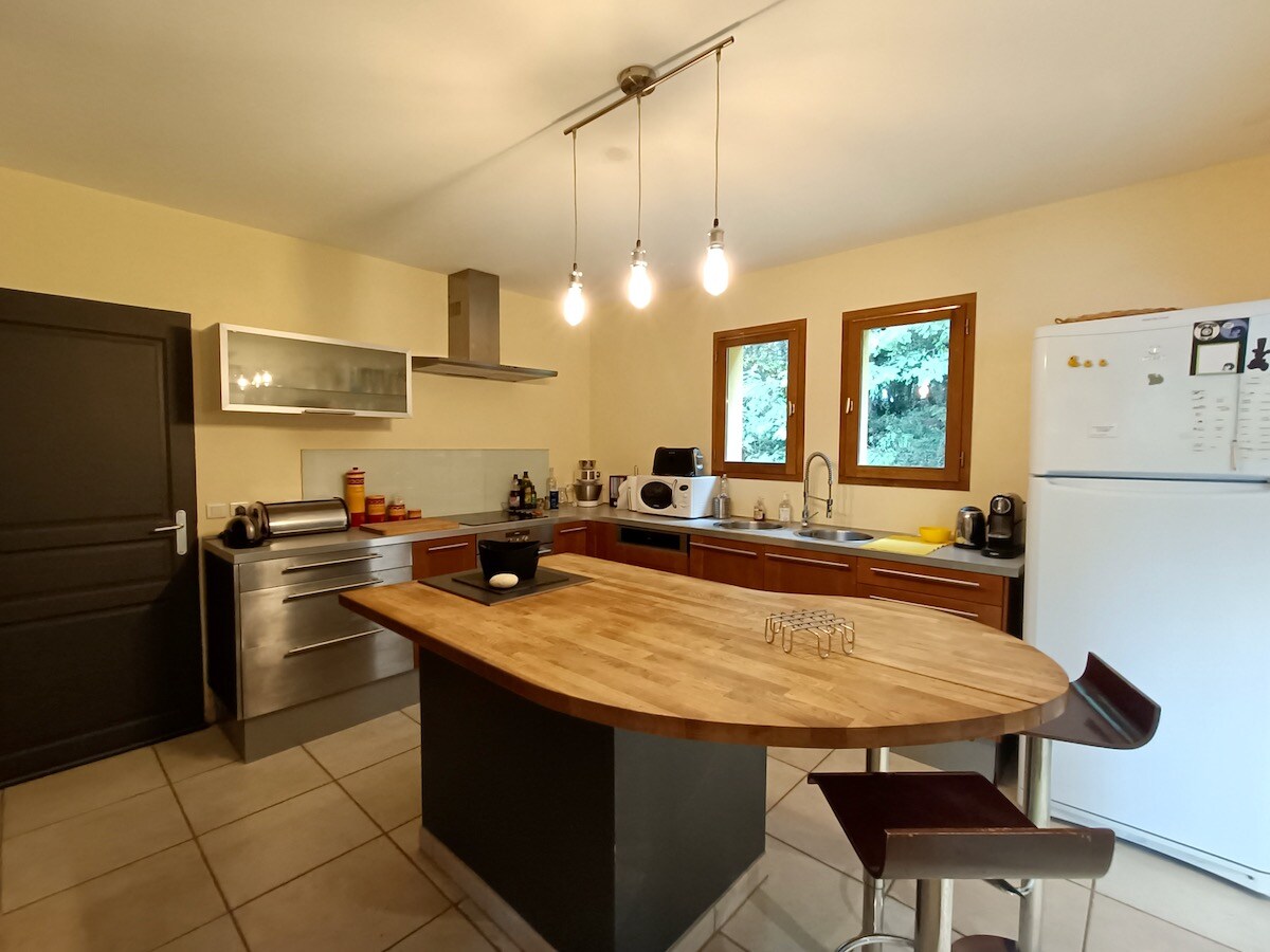 Pequeña casa de piedra, sencilla y agradable, en medio de bosques y huertos de nogales idealmente situado en el Périgord Noir. Gran habitación en el ático (bastante bajo techo) con sus paredes de piedra, con una gran cama doble king size. El aire acondicionado garantiza una noche de sueño cómodo incluso en días muy calurosos. Pequeña cocina equipada, con horno y microondas. Baño amplio y luminoso. Una encantadora terraza con vistas al bosque, tranquila con el canto de los pájaros.