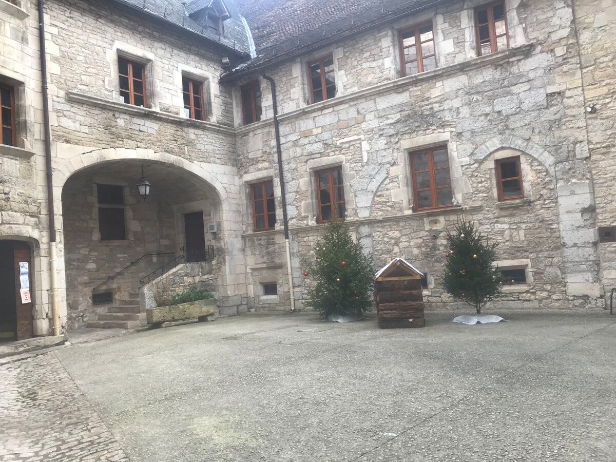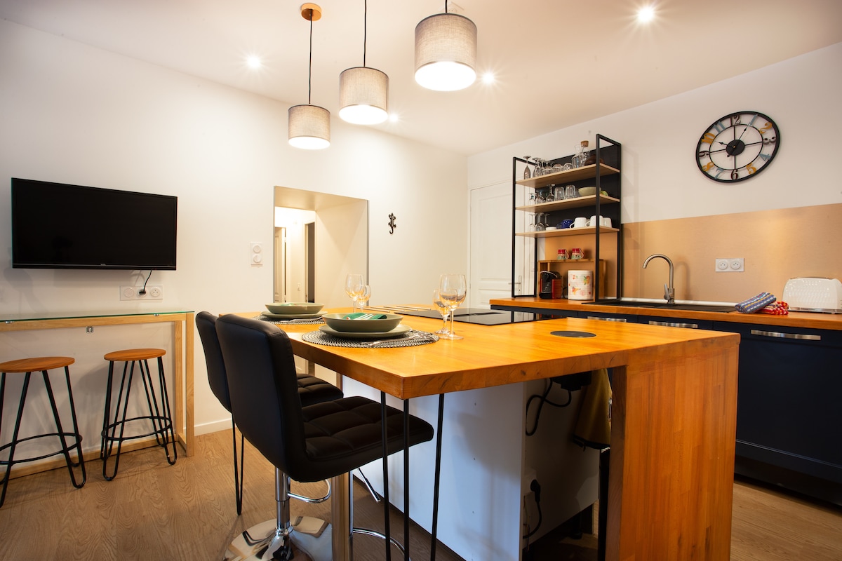 Nuestro pequeño estudio es un espacio encantador y acogedor con hermosas vistas al bosque, adecuado para una estancia cómoda para relajarse y explorar la Dordoña. Características: - Cama de matrimonio (160 x 200 cm) - Terraza - Vistas al bosque - Diseño y comodidades de lujo - Smart TV - Internet de alta velocidad gratuito (Starlink) - Cocina americana totalmente equipada - Baño separado con ducha *No apto para personas con movilidad reducida