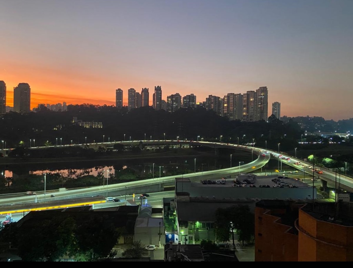 Encantador estudio ubicado en el séptimo piso con una vista solar privilegiada. Perfecto para parejas, personas que viajan solas o familias con niños. Muy bien ubicado; - a 5 minutos a pie de Tokio Marine y Villa Blue Tree; - A 8 minutos a pie de Nestlé y de la estación João Dias; - 2 km (10 minutos en coche) Vibra São Paulo; - 2 km (8 minutos en coche) Expo Transamérica SP; - 8 km (15 minutos en coche) Estadio Morumbi; - 11 km (20 minutos en coche) Autódromo de Interlagos; - 16 km (30 min en coche) Allianz Parque.