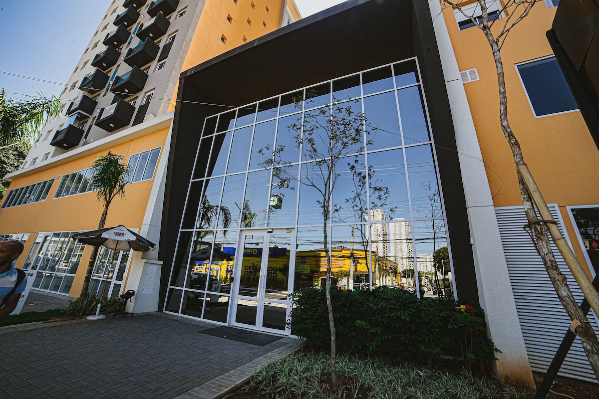 Relájate en este lugar único y silencioso. Cocina completa con electrodomésticos, TV inteligente de 43 pulgadas, ventilador móvil en el dormitorio, toallas y ropa de cama, hermosas vistas, cerca del centro comercial, estación de metro y tren CPTM, a 15 minutos de los aeropuertos de Congonhas, Berrini y Pinheiros, a solo 7 minutos a pie de EXPO TRANSAMERICA, a 10 minutos a pie de VIBRA, a 15 minutos del hipódromo de Interlagos, parque junto al edificio por R$ 10,00 -25,00 por un período de 12 horas o de forma gratuita en la calle. LLEGADA DESPUÉS DE LAS 3:00 P. M.