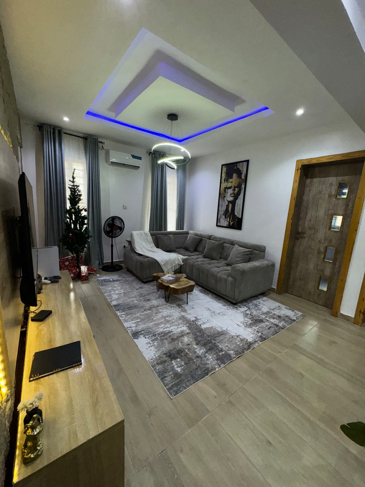 “Experience comfort and convenience in our cozy apartment!, Enjoy clean water, super-fast internet, Netflix, and cable for your entertainment. Stay secure with CCTV surveillance outside and relax knowing you have 24/7 electricity. Each room features a cinema-like projector and air conditioning for the ultimate relaxation Plus play station 5, our housekeeping services ensure a spotless clean stay. Book now for an unforgettable getaway!”