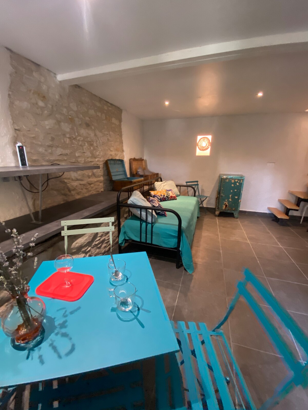Esta casa de campo reformada al estilo de nuestra casa de piedra, le espera en un entorno natural, en la tranquilidad del campo. Con una superficie de 35 m, la habitación está en la planta superior y el sofá cama está en el altillo. En la planta baja, cocina equipada con todo lo necesario y el baño. 2 terrazas privadas a su disposición. En verano podrá disfrutar de nuestra piscina hasta las 19:00. Para llegadas tardías hay una caja en la entrada para recoger las llaves
