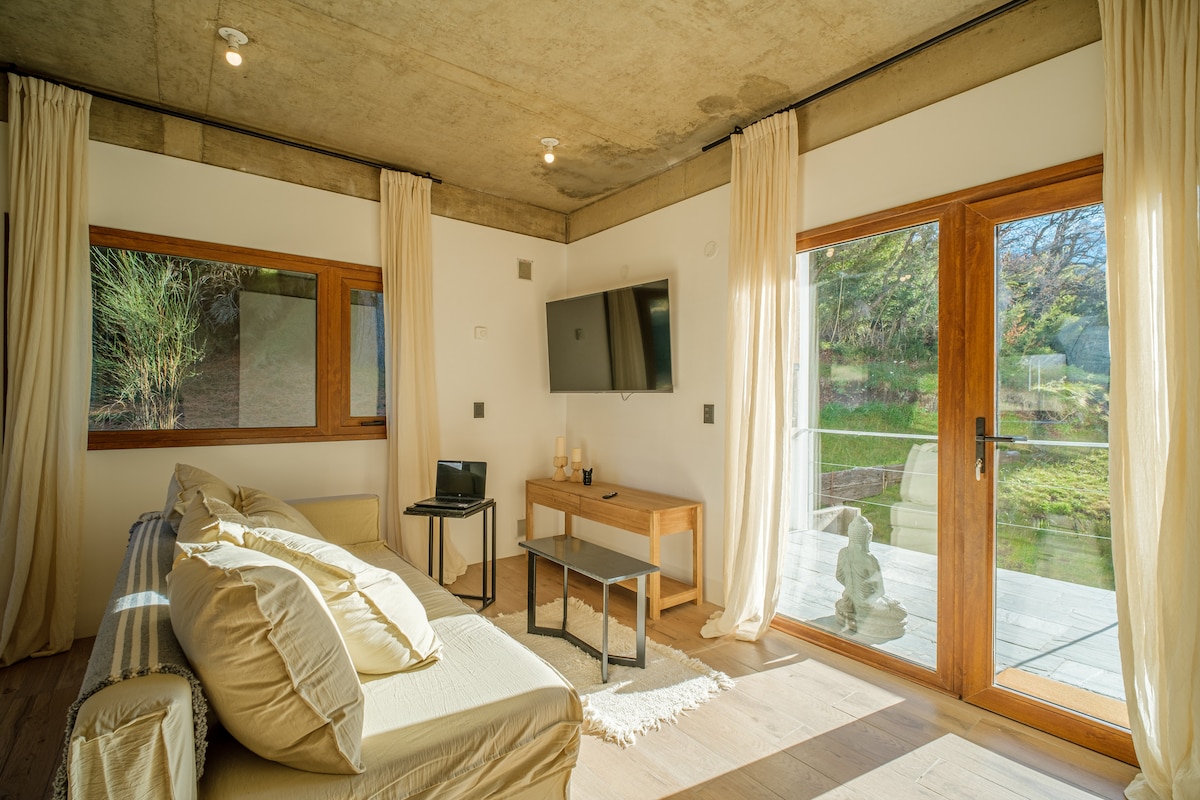 Si la idea es descansar y conectarse con la naturaleza, éste es el lugar. Ubicado en Circuito Chico brinda la posibilidad de realizar recorridos a pie o en kayak que serán recuerdos inolvidables. Bajando la escalera pueden acceder a una tranquila playa en la costa del Lago Moreno o disfrutar de la vista desde el deck o el jardín. Éste pequeño y acogedor estudio es la forma que encontramos de compartir nuestro lugar en el Mundo. Es indispensable tener auto.