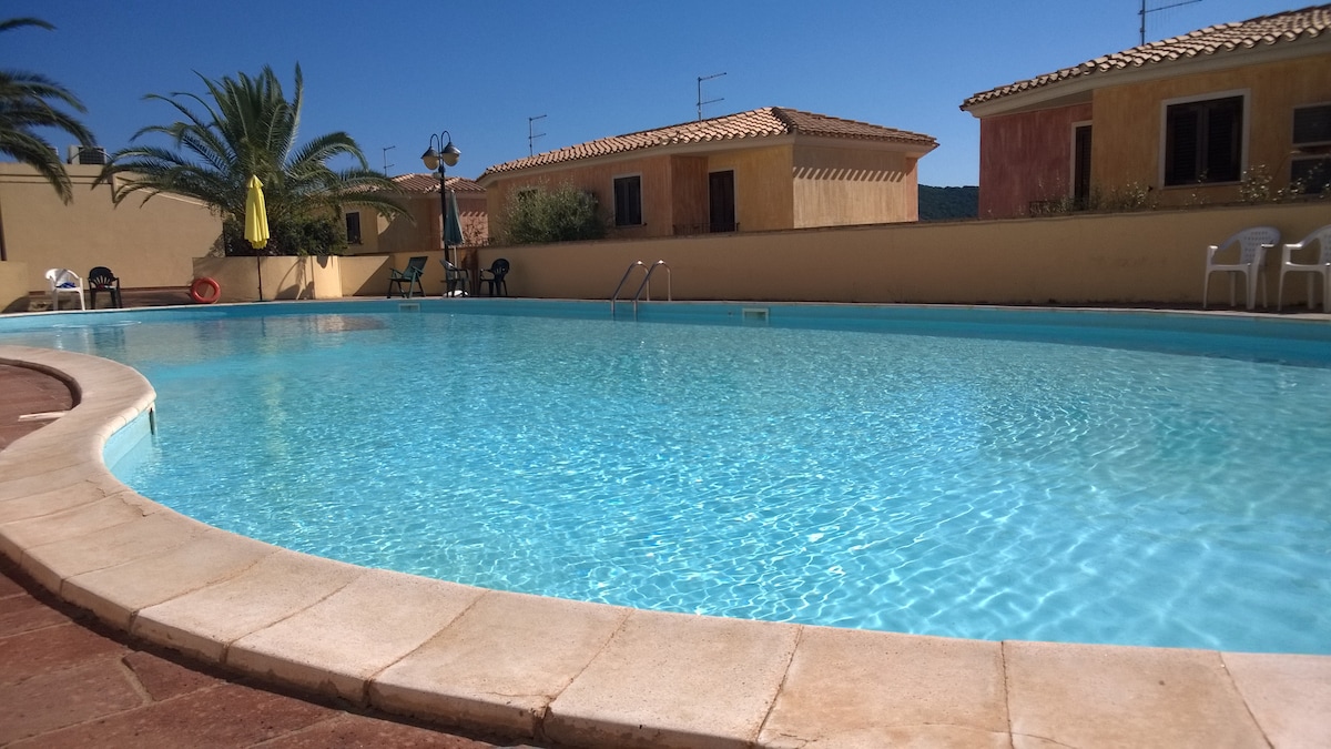 La casa si trova in paese, a pochi minuti dalle stupende spiagge di Villasimius, all'interno di un tranquillo e silenzioso residence con campo da tennis e piscina condominiale. Organizzata su 2 livelli: al piano superiore la zona notte con 1 camera matrimoniale ,1 camera con 2 letti a castello, un bagno/doccia; al piano terra la zona giorno con soggiorno, angolo cottura e un bagno/doccia. Terrazza esterna con vista panoramica e barbeque. La casa è climatizzata esclusivamente nella zona notte.