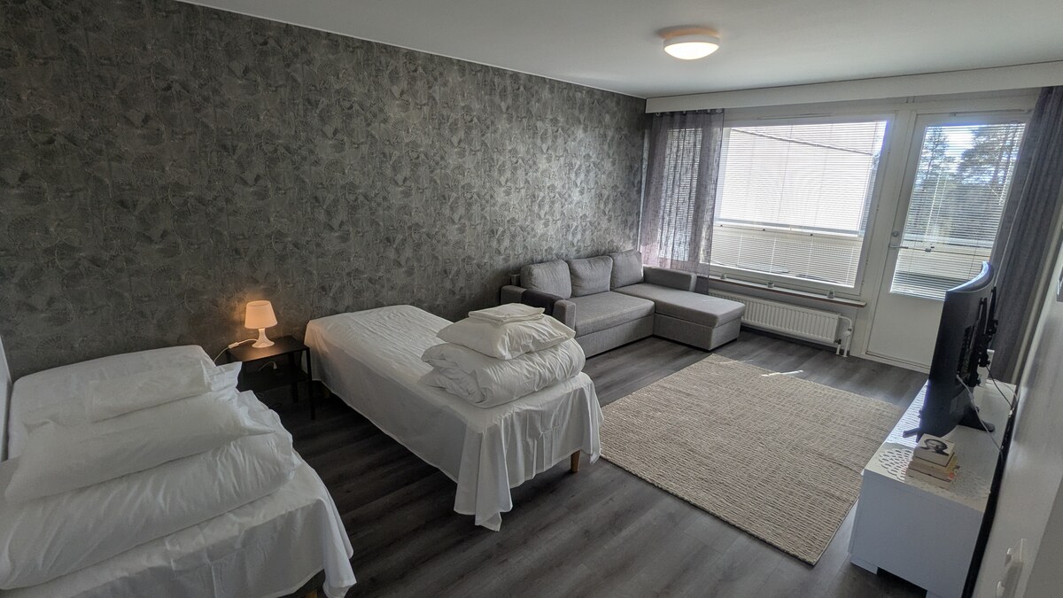 A cozy studio in a peaceful neighborhood, close to downtown Lahti. Within a 10-15 minute walk are Malva, the Travel Center, market square, sports center, harbor, and Sibelius Hall. The studio includes a living area, fully equipped kitchen, and clean bathroom. For extended stays, a washing machine is accessible outside the studio. The window faces the street with some car noise. Parking with a car heating plug is available in the courtyard. Enjoy nearby Lahti outdoor trails!