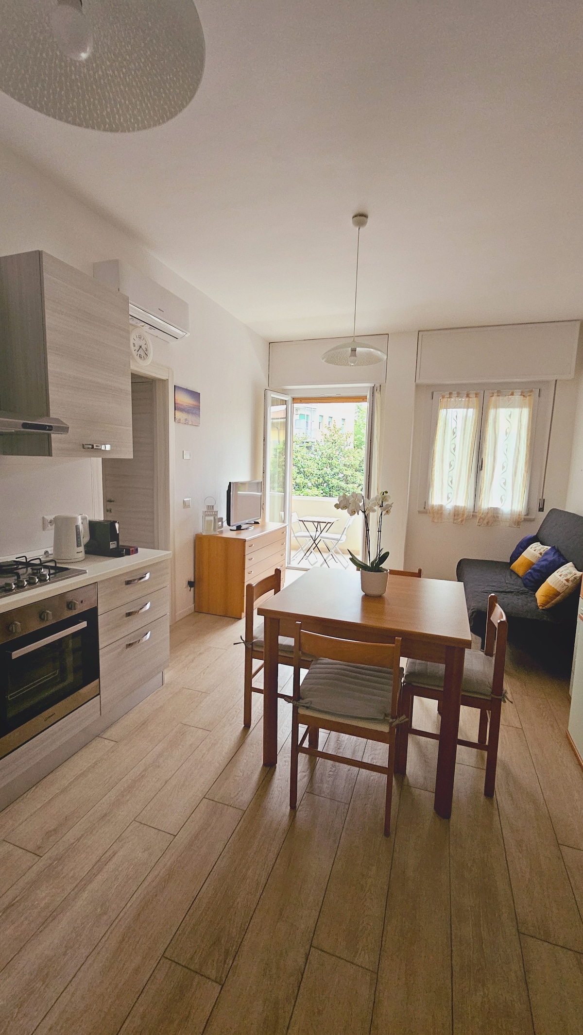 Acogedor apartamento situado en una zona estratégica junto al centro de Cesenatico, en el barrio de «Boschetto», a 150 metros del mar. El alojamiento ofrece dos habitaciones con 2 camas dobles y una individual; cocina perfectamente equipada con nevera, horno, utensilios varios, vajilla, placa de cocción y TV; un baño completo con cabina de ducha y lavadora. Hay una zona de barbacoa compartida. Entrada privada y aparcamiento gratuito dentro de la propiedad. Se admiten mascotas.